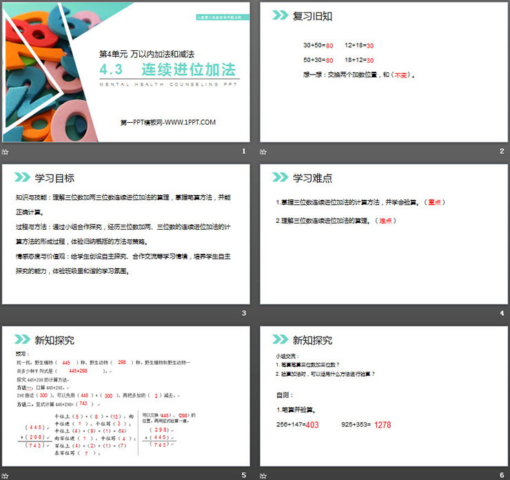 关键词:连续进位加法PPT课件免费下载,万以内加法和减法PPT下载,.PPT格式;