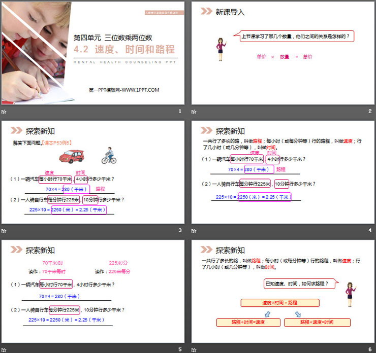 关键词:三位数乘两位数PPT课件免费下载,速度时间和路程PPT下载,.PPT格式;
