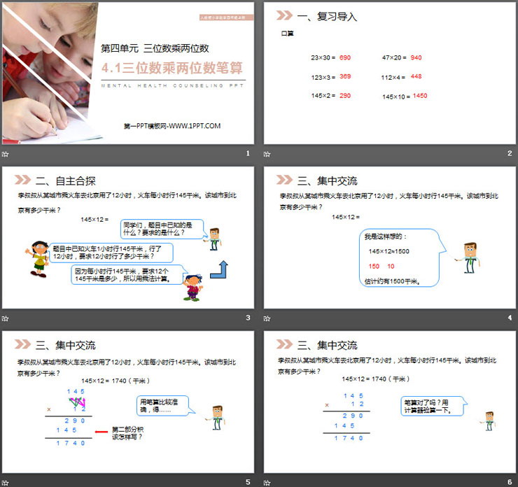 关键词:三位数乘两位数笔算PPT课件免费下载,三位数乘两位数PPT下载,.PPT格式;