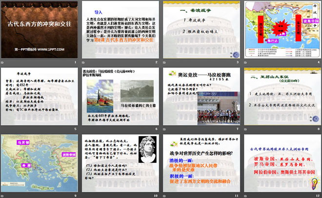 关键词:古代东西方文明及其交往教学课件,古代东西方的冲突和交往教学课件,中华书局版九年级上册历史PPT课件下载,九年级历史幻灯片课件下载,古代东西方文明及其交往PPT课件下载,古代东西方的冲突和交往PPT课件下载,.PPT格式;