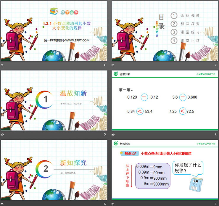 关键词:小数点移动引起小数大小变化的规律PPT课件免费下载,小数的意义和性质PPT下载,.PPT格式;