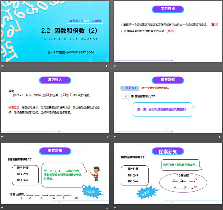 关键词:因数和倍数PPT课件免费下载,因数和倍数PPT下载,.PPT格式;