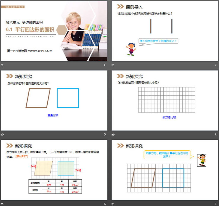 第六单元 多边形的面积,《平行四边形的面积》PPT课件下载,共21页。