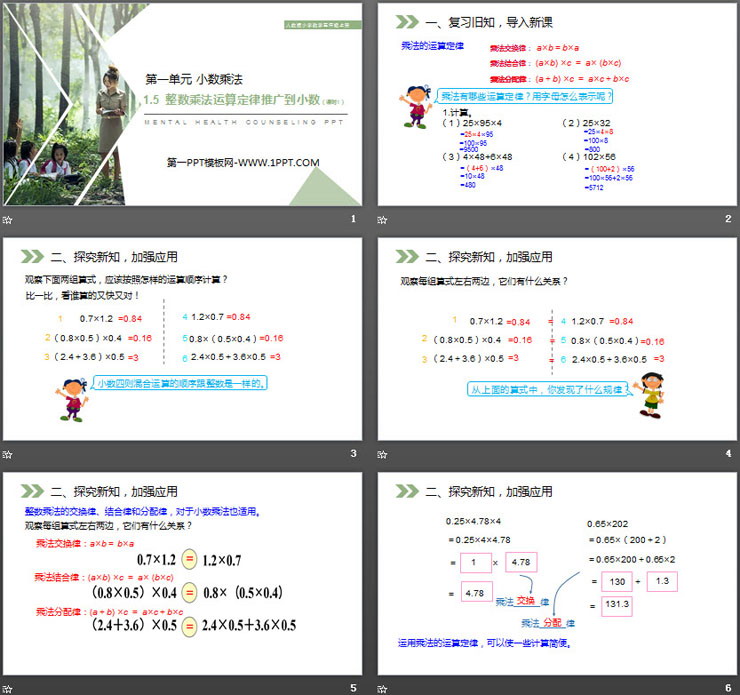 第一单元 小数乘法,《整数乘法运算定律推广到小数》PPT课件下载(第1课时),共18页。