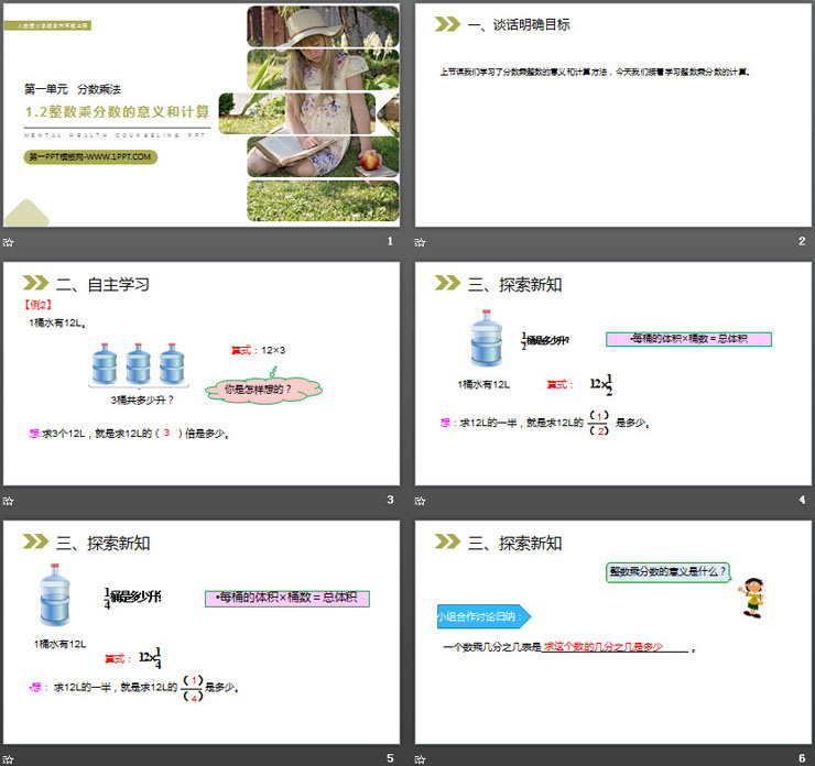 第一单元 分数乘法,《整数乘分数的意义和计算》PPT课件下载,共16页。