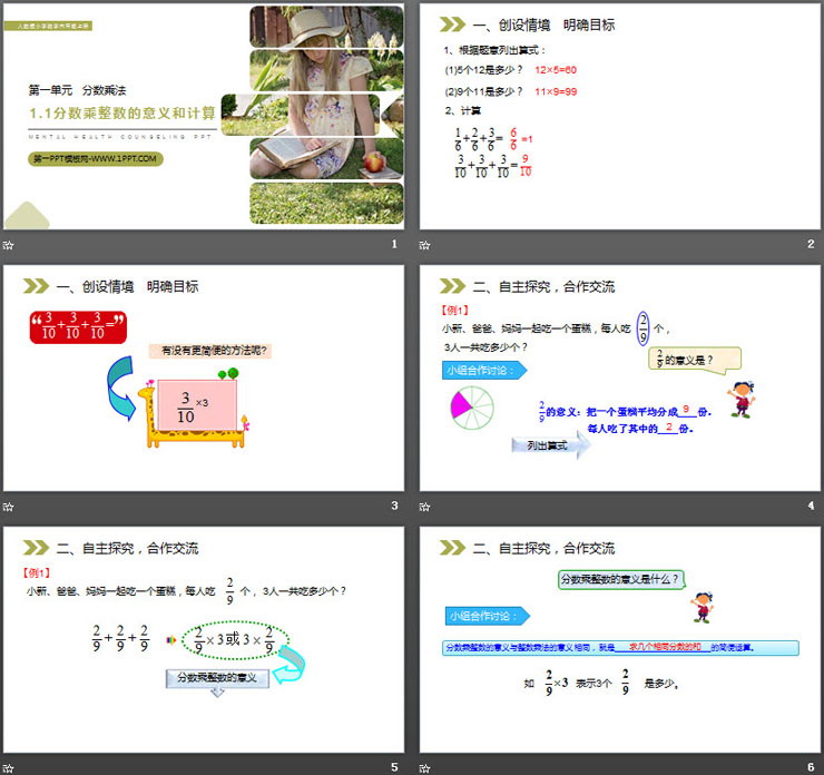 第一单元 分数乘法,《分数乘整数的意义和计算》PPT课件下载,共18页。