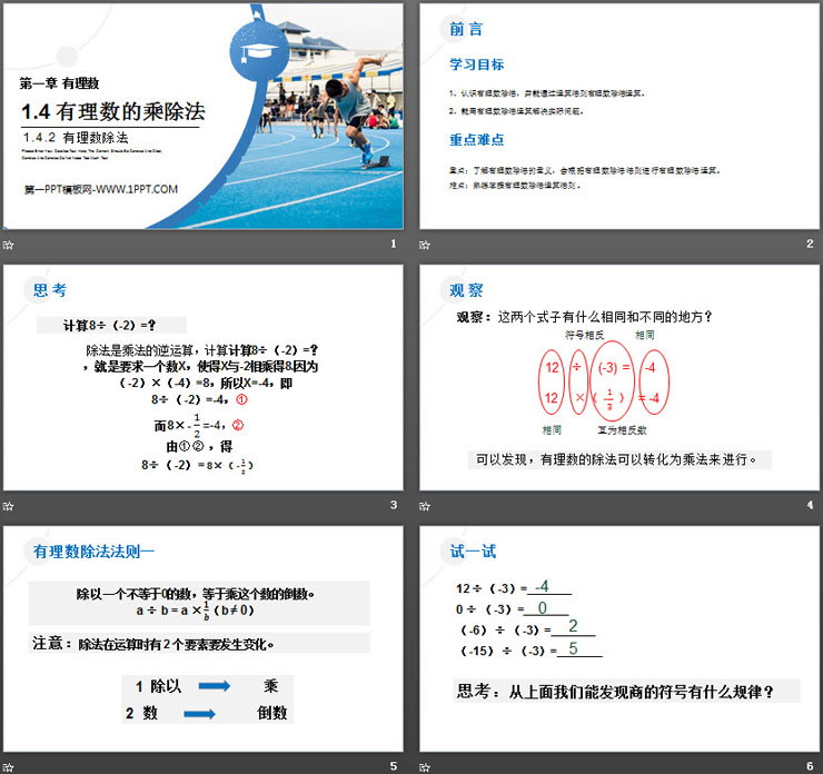 第一单元有理数,《有理数的乘除法》PPT课件下载(第二课时有理数除法),共18页。