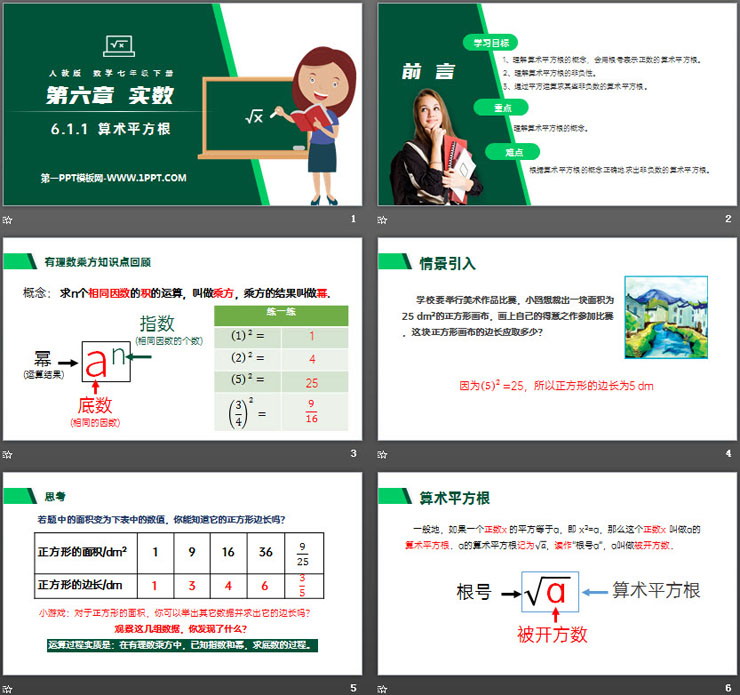 关键词:算术平方根PPT课件免费下载,实数PPT下载,.PPT格式;