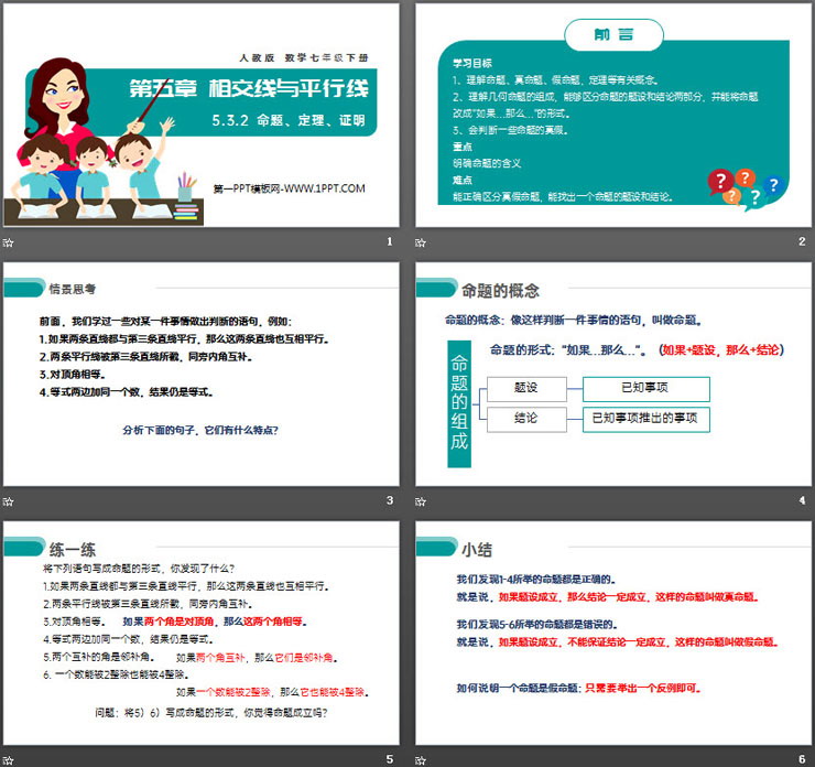 第五单元 相交线与平行线,《命题、定理、证明》PPT课件下载,共17页。