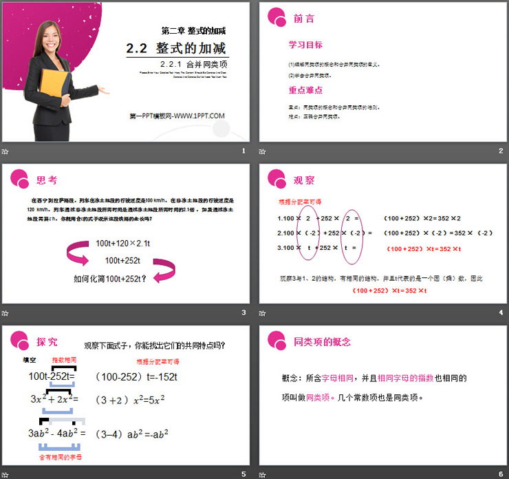 关键词:整式的加减PPT课件免费下载,合并同类项PPT下载,.PPT格式;