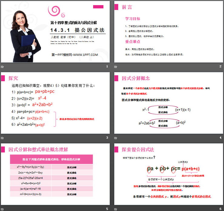 关键词:提公因式法PPT课件免费下载,整式的乘法与因式分解PPT下载,.PPT格式;