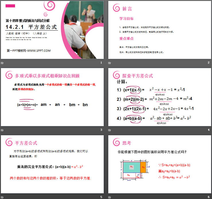 关键词:平方差公式PPT课件免费下载,整式的乘法与因式分解PPT下载,.PPT格式;