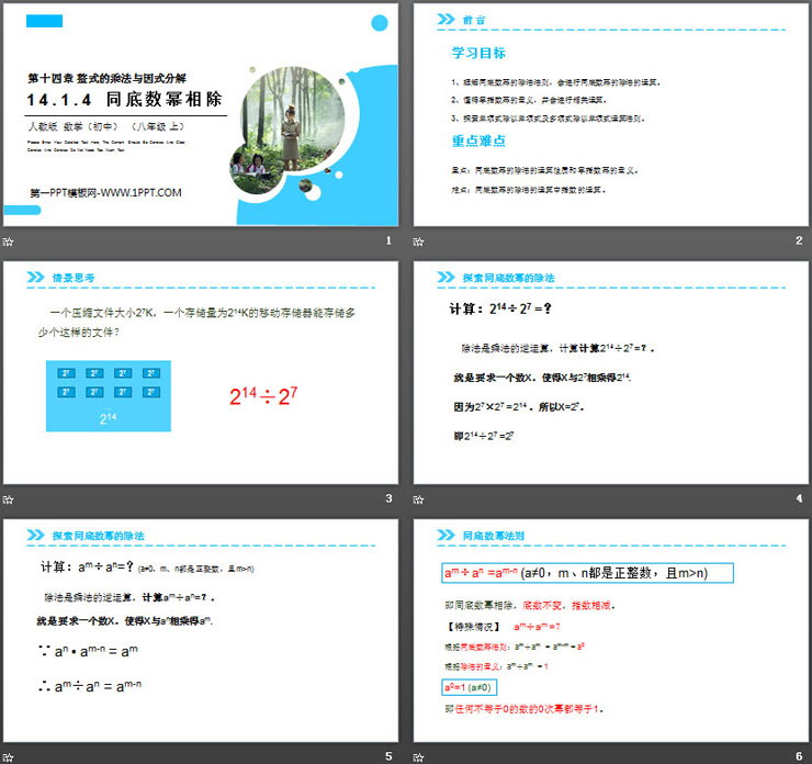 第十四单元 整式的乘法与因式分解,《同底数幂相除》PPT课件下载,共18页。