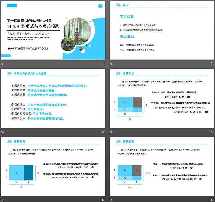 第十四单元 整式的乘法与因式分解,《多项式与多项式相乘》PPT课件下载,共18页。
