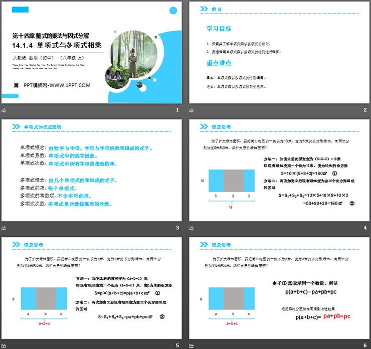 第十四单元 整式的乘法与因式分解,《单项式与多项式相乘》PPT课件下载,共17页。