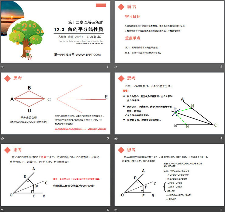 关键词:角的平分线性质PPT课件免费下载,全等三角形PPT下载,.PPT格式;