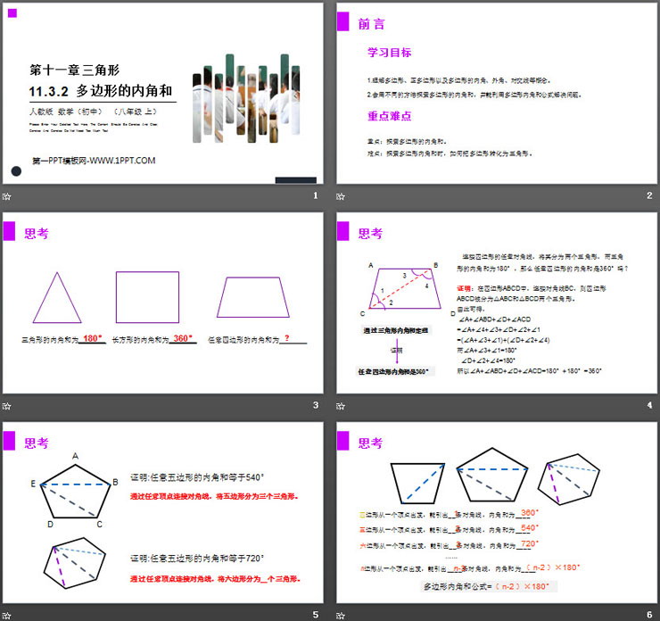 关键词:多边形的内角和PPT课件免费下载,三角形PPT下载,.PPT格式;