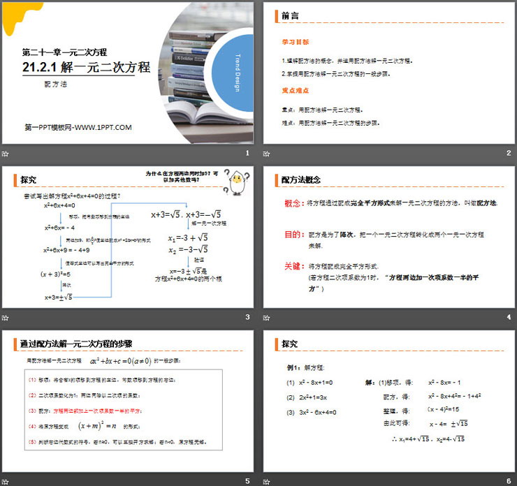 关键词:解一元二次方程PPT课件免费下载,配方法PPT下载,一元二次方程PPT下载,.PPT格式;