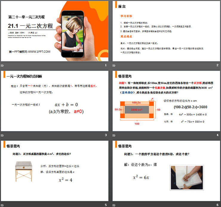 第二十一单元,《一元二次方程》PPT课件下载,共18页。