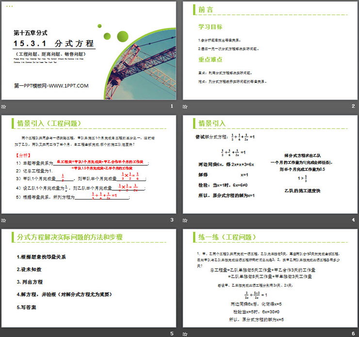 关键词:分式方程PPT课件免费下载,分式PPT下载,工程问题距离问题销售问题PPT下载,.PPT格式;