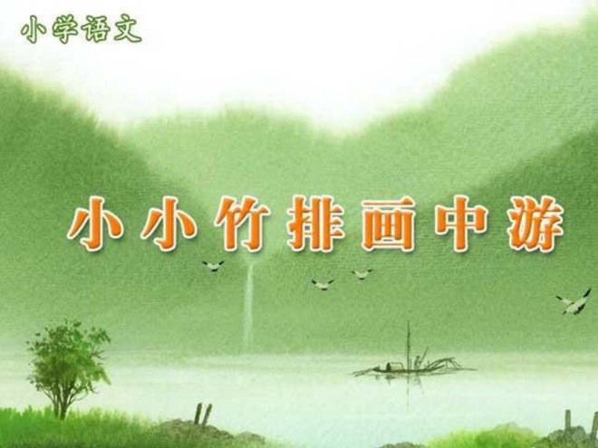 人教版小学语文一年级上册《小小竹排画中游》PPT课件下载;《小小竹排画中游》PPT课件内容:借助拼音读准字音,读通句子,小组交流记字方法。《小小竹排画中游》课文:xiǎo xiǎo zhú pái huà zhōng yóu小 小 竹 排 画 中 游xiǎo zhú pái shùn shuǐ liú小 竹 排 顺 水 流niǎo er chàng yú er yóu鸟 儿 唱 鱼 儿 游。liǎng àn shù mù mì 两 岸 树 木 密hé miáo lǜ yóu yóu禾 苗 绿 油 油。jiāng nán yú mǐ xiāng江 南 鱼 米 乡xiǎo xiǎo zhú pái huà zhōng yóu小 小 竹 排 画 中 游。感受领悟: