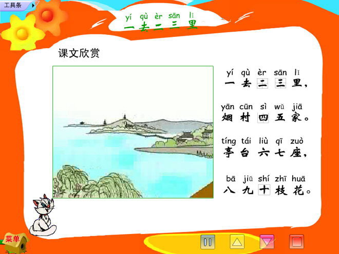 yle="width: 660px; height: 495px;" />新课标人教版一年级语文《一去二三里》FLASH课件下载;本课件包括一去二三里课文学习,自学生字,指导写字,课后作业等环节,具有很高的互动性。关键词:人教版PPT课件下载,新课标语文课件,人教版小学语文一年级上册,《一去二三里》flash课件下载;