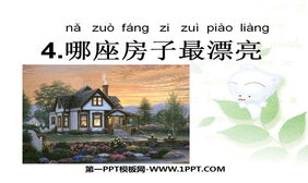 小学一年级上册语文第四课哪座房子最漂亮PPT课件2;《哪座房子最漂亮》课文:yle="display: none;"> nǎ zuò fáng zǐ zuì piào liang哪 座 房 子 最 漂 亮 ?yí zuò fáng liǎng zuò fáng一 座 房 两 座 房 qīng qīng de wǎ bái bái de qiáng青 青 的 瓦 白 白 的 墙 kuān kuān de mén dà dà de chuāng宽 宽 的 门 大 大 的 窗 。整体感知:sān zuò fáng sì zuò fáng三 座 房 四 座 房 fáng qián huā guǒ xiǎng房 前 花 果 香 wū hòu shù chéng háng屋 后 树 成 行 。nǎ zuò fáng zǐ zuì piào liang哪 座 房 子 最 漂 亮 ?yào shǔ wǒ men de xiǎo xué táng要 数 我 们 的 小 学 堂 。● 说一说:1、我们的学校最漂亮2、我们村最……3、我们社区最……● 画一画:画一所“漂亮的小学堂”,在小组内展示、交流。关键词:新课标语文课件,人教版小学语文一年级上册课件下载,哪座房子最漂亮PPT课件下载;