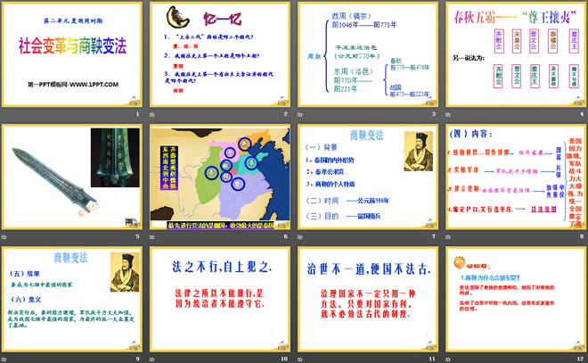 关键词:夏商周时期教学课件,社会变革与商鞅变法教学课件,华师大版七年级上册历史PPT课件下载,七年级历史幻灯片课件下载,夏商周时期PPT课件下载,社会变革与商鞅变法PPT课件下载,.PPT格式;