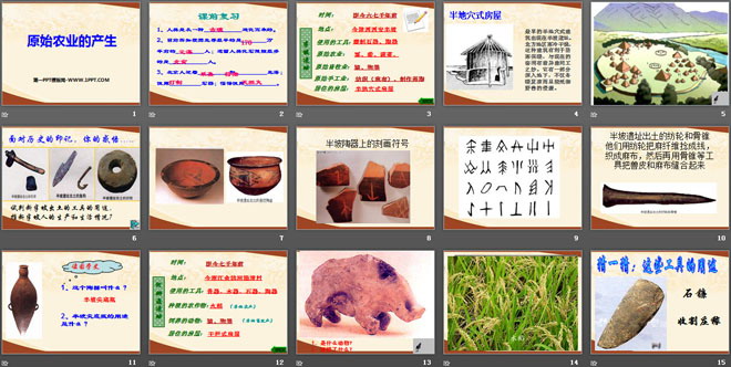 关键词:史前时期教学课件,原始农业的产生教学课件,华师大版七年级上册历史PPT课件下载,七年级历史幻灯片课件下载,史前时期PPT课件下载,原始农业的产生PPT课件下载,.PPT格式;