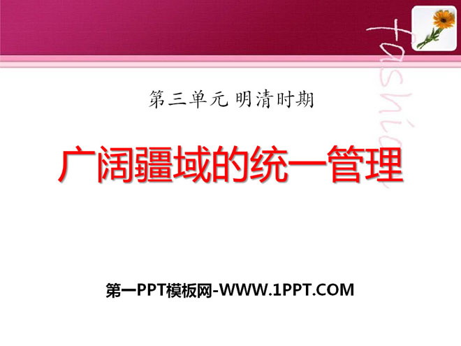 关键词:明清时期教学课件,广阔疆域的统一管理教学课件,华师大版七年级下册历史PPT课件下载,七年级历史幻灯片课件下载,明清时期PPT课件下载,广阔疆域的统一管理PPT课件下载,.PPT格式;