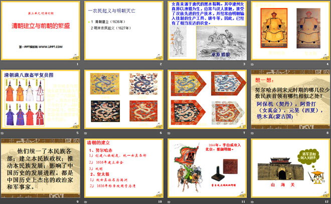 关键词:明清时期教学课件,清朝建立与前朝的繁盛教学课件,华师大版七年级下册历史PPT课件下载,七年级历史幻灯片课件下载,明清时期PPT课件下载,清朝建立与前朝的繁盛PPT课件下载,.PPT格式;