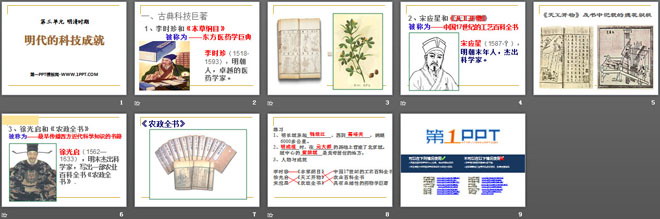 关键词:明清时期教学课件,明代的科技成就教学课件,华师大版七年级下册历史PPT课件下载,七年级历史幻灯片课件下载,明清时期PPT课件下载,明代的科技成就PPT课件下载,.PPT格式;