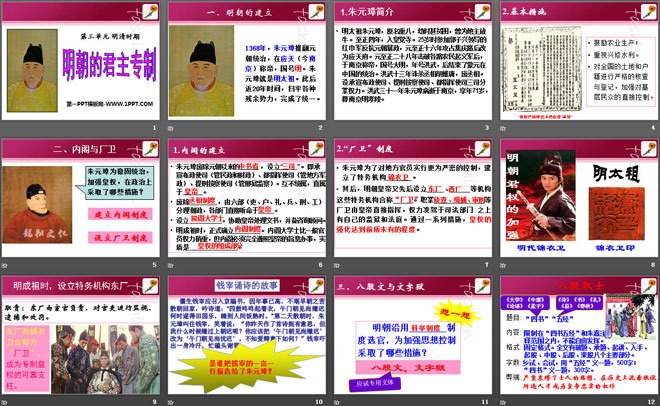 关键词:明清时期教学课件,明朝的君主专制教学课件,华师大版七年级下册历史PPT课件下载,七年级历史幻灯片课件下载,明清时期PPT课件下载,明朝的君主专制PPT课件下载,.PPT格式;