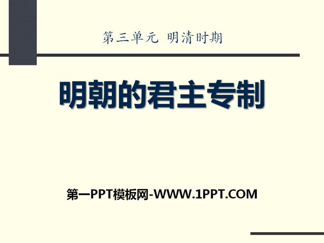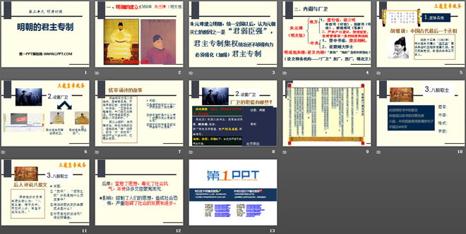 关键词:明清时期教学课件,明朝的君主专制教学课件,华师大版七年级下册历史PPT课件下载,七年级历史幻灯片课件下载,明清时期PPT课件下载,明朝的君主专制PPT课件下载,.PPT格式;