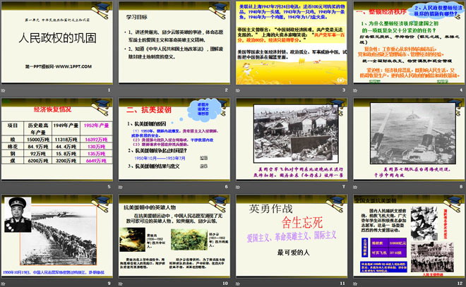 关键词:中华民族共和国的成立和巩固教学课件,人民政权的巩固教学课件,华师大版八年级下册历史PPT课件下载,八年级历史幻灯片课件下载,中华民族共和国的成立和巩固PPT课件下载,人民政权的巩固PPT课件下载,.PPT格式;