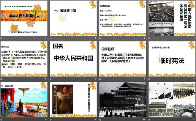 关键词:中华人民共和国的成立教学课件,中华民族共和国的成立和巩固教学课件,华师大版八年级下册历史PPT课件下载,八年级历史幻灯片课件下载,中华人民共和国的成立PPT课件下载,中华民族共和国的成立和巩固PPT课件下载,.PPT格式;