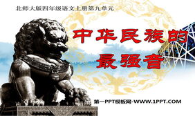 关键词:中华民族的最强音课件下载,北师大版四年级上册语文PPT课件下载,四年级语文幻灯片课件下载,中华民族的最强音PPT课件下载,.PPT格式;