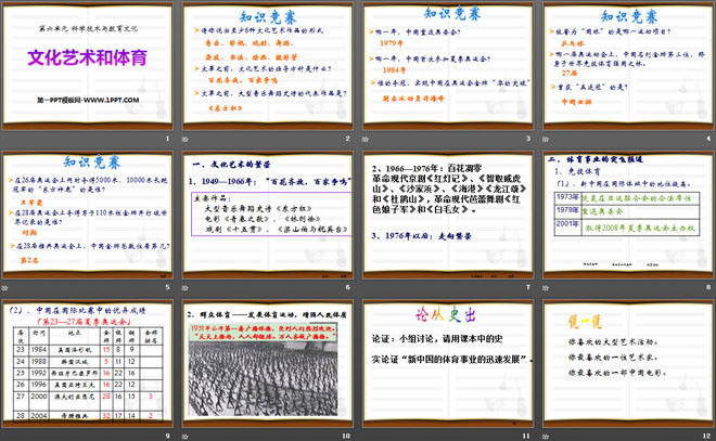 关键词:科学技术与教育文化教学课件,文化艺术和体育教学课件,华师大版八年级下册历史PPT课件下载,八年级历史幻灯片课件下载,科学技术与教育文化PPT课件下载,文化艺术和体育PPT课件下载,.PPT格式;