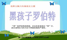 关键词:黑孩子罗伯特课件下载,北师大版六年级上册语文PPT课件下载,六年级语文幻灯片课件下载,黑孩子罗伯特PPT课件下载,.PPT格式;
