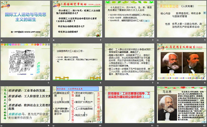 关键词:国际工人运动与马克思主义的诞生教学课件,第一次工业革命和国际工人运动教学课件,华师大版九年级上册历史PPT课件下载,九年级历史幻灯片课件下载,国际工人运动与马克思主义的诞生PPT课件下载,第一次工业革命和国际工人运动PPT课件下载,.PPT格式;