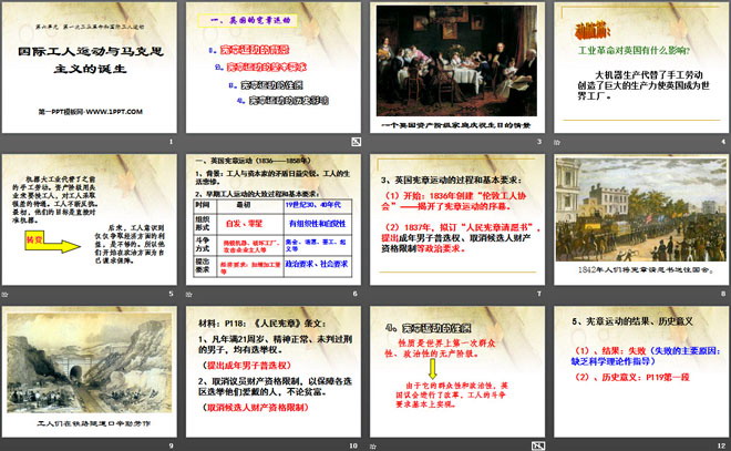 关键词:第一次工业革命和国际工人运动教学课件,国际工人运动与马克思主义的诞生教学课件,华师大版九年级上册历史PPT课件下载,九年级历史幻灯片课件下载,第一次工业革命和国际工人运动PPT课件下载,国际工人运动与马克思主义的诞生PPT课件下载,.PPT格式;