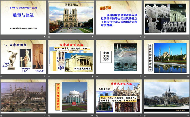 说出阿拉伯麦加清真寺和巴黎圣母院等古代建筑的特点,了解古代劳动人民的创造力和审美情趣。