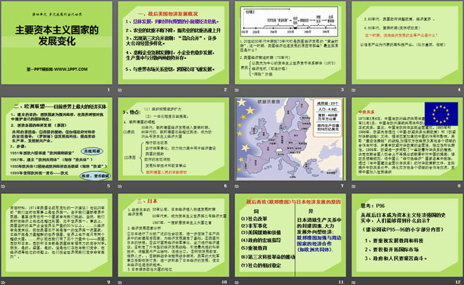 关键词:多元发展的当代世界教学课件,主要资本主义国家的发展变化教学课件,华师大版九年级下册历史PPT课件下载,九年级历史幻灯片课件下载,多元发展的当代世界PPT课件下载,主要资本主义国家的发展变化PPT课件下载,.PPT格式;