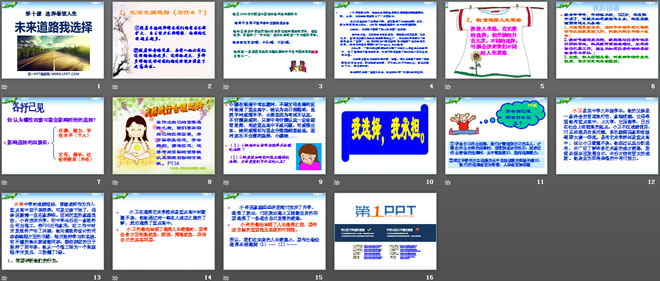 关键词:选择希望人生教学课件,未来道路我选择教学课件,新人教版九年级全一册思想品德PPT课件,九年级思想品德幻灯片课件下载,选择希望人生PPT课件下载,未来道路我选择PPT课件下载,.ppt格式