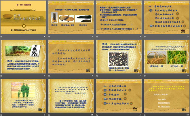 关键词:史前时代教学课件,原始农业与村落生活教学课件,岳麓版七年级上册历史PPT课件下载,七年级历史幻灯片课件下载,史前时代PPT课件下载,原始农业与村落生活PPT课件下载,.PPT格式;