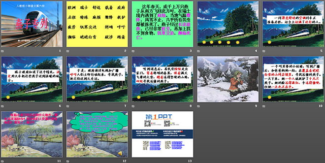 关键词:燕子专列课件PPT,新人教版三年级下册语文PPT课件下载,三年级语文幻灯片课件下载,燕子专列PPT课件下载,.PPT格式