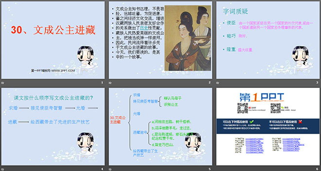 关键词:文成公主进藏课件PPT,新人教版四年级下册语文PPT课件下载,四年级语文幻灯片课件下载,文成公主进藏PPT课件下载,.PPT格式