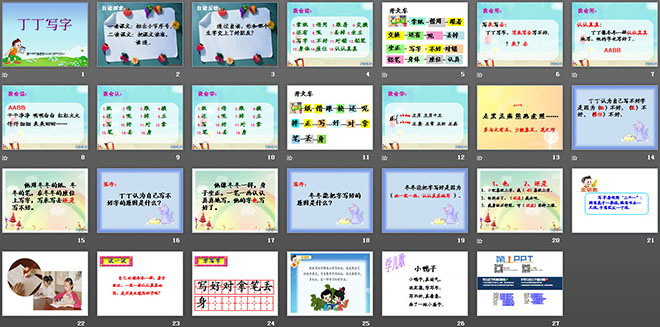 关键词:丁丁学写字课件PPT,北师大版一年级下册语文PPT课件下载,一年级语文幻灯片课件下载,丁丁学写字PPT课件下载,.PPT格式