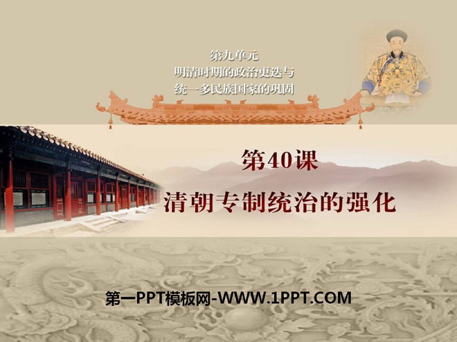 关键词:明清时期的政治更迭与统一多民族国家的巩固教学课件,清朝专制统治的强化教学课件,岳麓版七年级下册历史PPT课件下载,七年级历史幻灯片课件下载,明清时期的政治更迭与统一多民族国家的巩固PPT课件下载,清朝专制统治的强化PPT课件下载,.PPT格式;