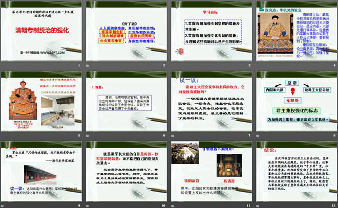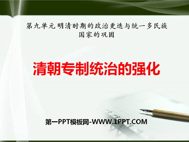 关键词:明清时期的政治更迭与统一多民族国家的巩固教学课件,清朝专制统治的强化教学课件,岳麓版七年级下册历史PPT课件下载,七年级历史幻灯片课件下载,明清时期的政治更迭与统一多民族国家的巩固PPT课件下载,清朝专制统治的强化PPT课件下载,.PPT格式;